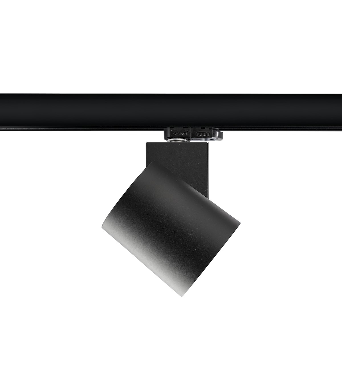 Projecteur LED intégré, noir texturé - RAL9005, design compact et minimaliste, idéal pour les applications de vente au détail, corps en aluminium moulé sous pression, dissipateur thermique de refroidissement passif. Angle de faisceau : 38°, température de couleur : 4000K, puissance totale du système : 35W, puissance totale du luminaire : 3616 lm, Lor : 100 %, rendu des couleurs : Ra : 90 typique, Chromaticité LED : ellipse MacAdam à 3 niveaux, source lumineuse sans IR/UV sans rayonnement thermique, tension de fonctionnement : 220-240V / 50-60Hz, courant d’attaque : 900mA, pilote électronique, non dimmable, facteur de puissance : 0,93, protection électrique : classe II, adaptateur 3 phases Global Track adapté aux pistes à 3 circuits Global trac, indice de protection : IP20, convient uniquement à l’environnement intérieur, rotation horizontale : 355°, inclinaison verticale : 90°, dimensions : Ø113x164x240, poids : 1,368 kg