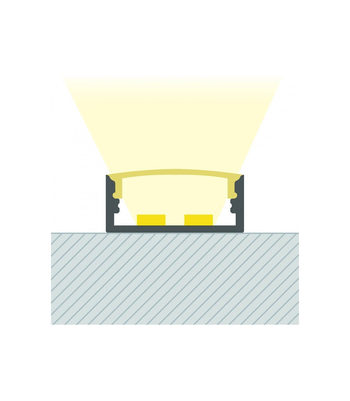 Le profilé s'accompagne d'accessoires complet pour l'installation. Parmi ces accessoires vous trouverez le diffusant couvrant la led tout en laissant passer la lumière, harmonisant ainsi l'aspect global de votre éclairage. Créer une surface lumineuse avec notre profilé led, c'est créer un espace design de qualité avec une lumière régulière et agréable sur toute sa surface.